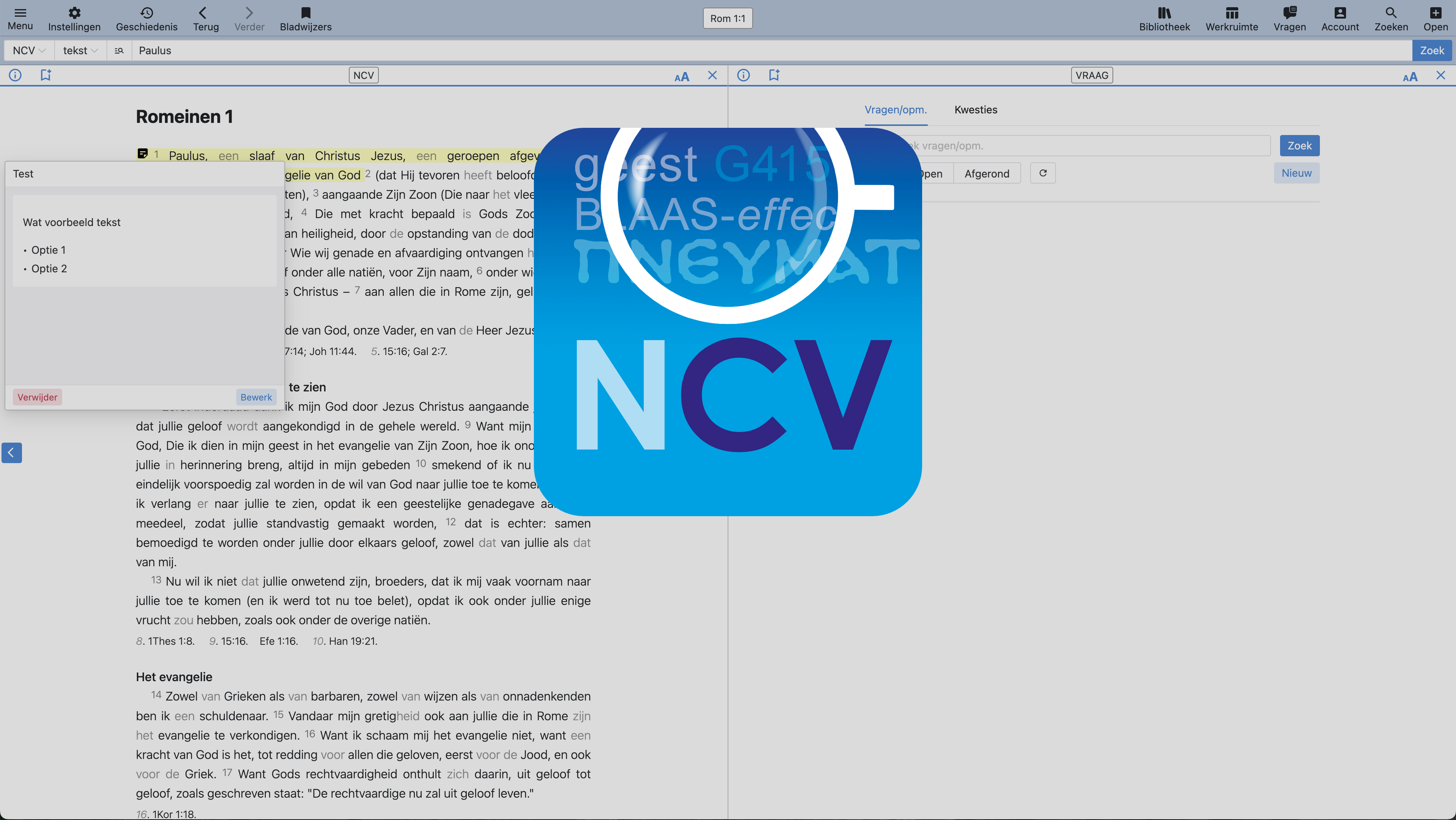 Een serie avonden in de Aker waarin besproken wordt hoe je meer uit je Bijbel haalt, wat veel voorkomende misvattingen zijn en hoe je alles uit de App haalt. Deze serie is met versie 3 van de app gemaakt, en zal dus niet helemaal overeen komen met de nieuwere versie.